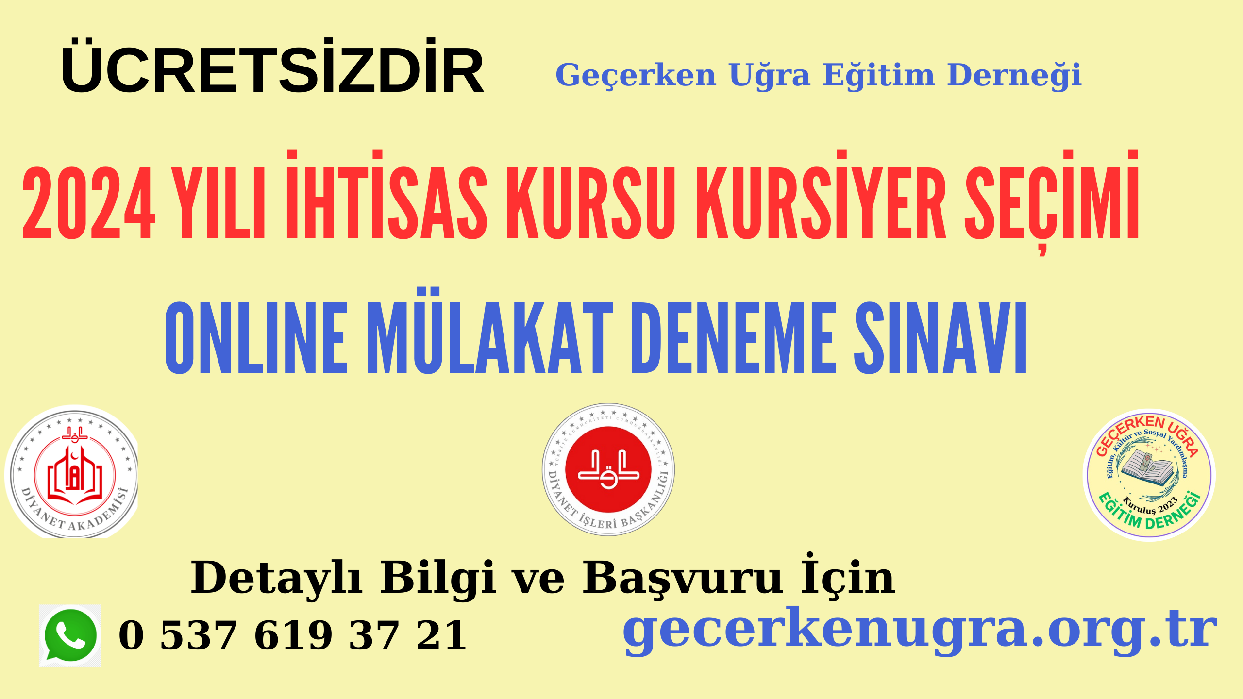 2024 YILI İHTİSAS KURSU KURSİYER SEÇİMİ MÜLAKAT DENEME SINAVI BAŞVURU VE BİLGİLENDİRME FORMU