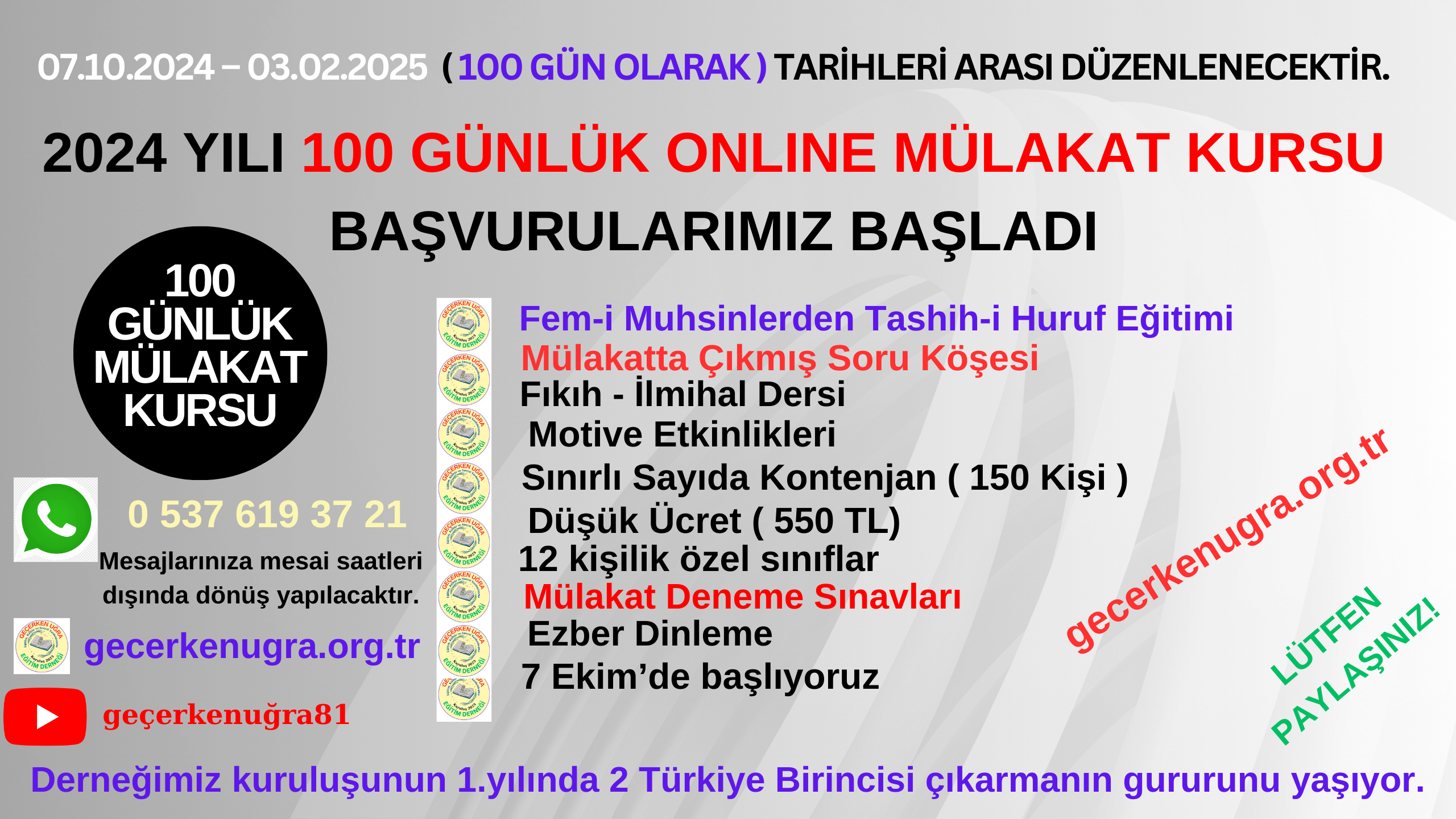 2024 YILI ONLINE MÜLAKAT KURSU BAŞVURU VE BİLGİLENDİRME FORMU - Formu doldurduktan sonra mesai saatleri dışında 48 saat içersinde tarafınıza dönüş sağlanacaktır. Kontenjanımız 150 kişi ile sınırlıdır. Geçerken Uğra'yın. Lütfen Paylaşınız!