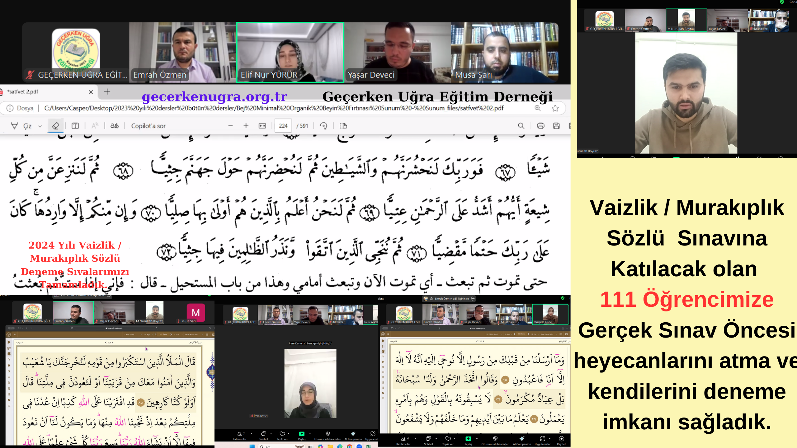 2024 Yılı Vaizlik / Murakıplık Sözlü Deneme Sıvalarımızı Tamamladık. Vaizlik / Murakıplık Sözlü Sınavına Katılacak olan 111 Öğrencimize Gerçek Sınav Öncesi heyecanlarını atma ve kendilerini deneme imkanı sağladık.