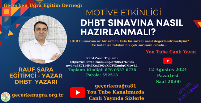 DHBT YAZARI RAUF ŞARA İLE DHBT ÜZERİNE YAPACAĞIMIZ SÖYLEŞİYE DAVETLİSİNİZ. 12.08.2024 PAZARTESİ SAAT:20:00’ GEÇERKENUĞRA81 YOU TUBE KANALIMIZDA