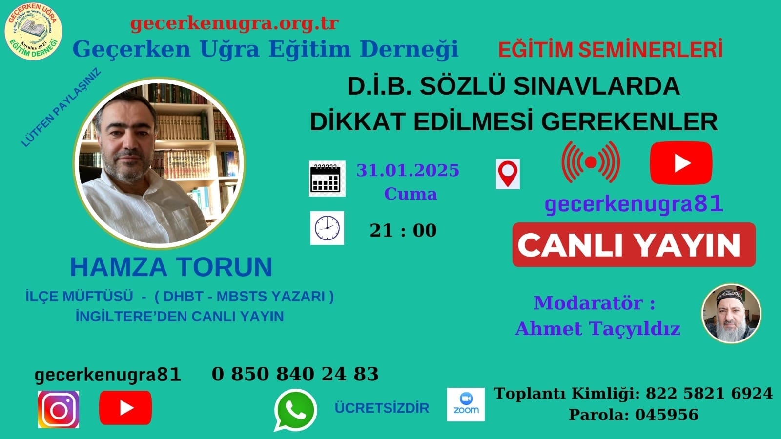 DİYANET AKADEMİ GİRİŞ SÖZLÜ SINAVI ÖNCESİ NE YAPMALI, SINAV GÜNÜ HANGİ HAZIRLIKLAR YAPILMALI, SINAV ESNASINDA NASIL HAREKET EDİLMESİ, SINAV HEYACANINI YENMEK İÇİN NELER YAPMALIYIZ?.... VE DAHA BİR ÇOK SORUNUN CEVABINI BULACAĞINIZ MOTİVE ETKİNLİĞİMİZİN KONUĞU İNGİLTERE’DEN CANLI BAĞLANTI İLA ARAMIZA