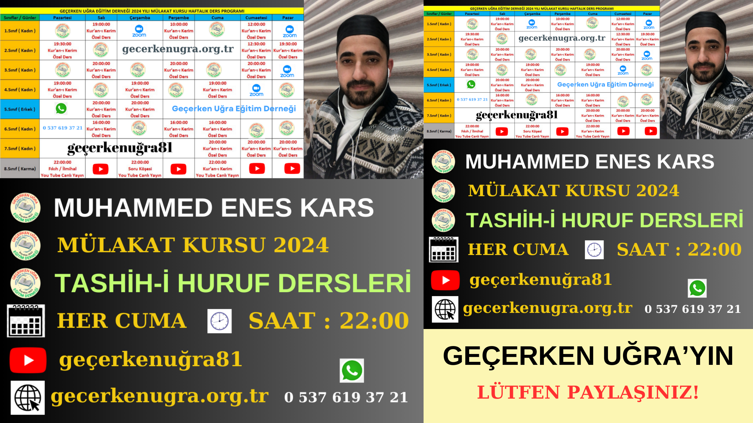 TASHİH-İ HURUF DERSİ 1. BÖLÜM – HARFLERİN MAHREÇLERİ 1. KISIM – FATİHA SURESİ TA’LİMİ - MUHAMMED ENES KARS - MÜLAKAT KURSU 2024 - GEÇERKEN UĞRA